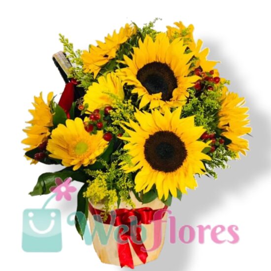 Se compone de: – Girasoles – Hipéricos – Botella de Vino